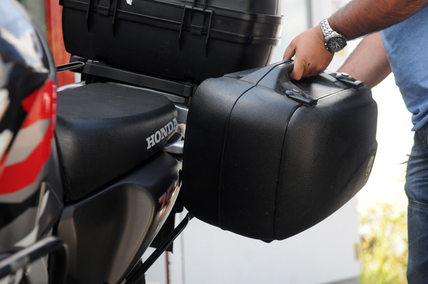 3. Material: Auch fürs Packen gelten besondere Regeln beim Bike. Grundsätzlich wichtig ist es, das Gewicht nicht zu weit hinten anzubringen. Denn ist das Vorderrad zu sehr entlastet, fängt das Motorrad an zu pendeln. Zudem kann es für die beladene Maschine nötig sein, das Fahrwerk nachzujustieren. Hinweise dazu liefert das Handbuch, das ohnehin dabei sein sollte. Bei der Gepäckauswahl zudem darauf achten, die maximal freigegebene Zuladung nicht zu überschreiten. Weitere Tipps: Richtig schwere Gegenstände gehören in den Tankrucksack. Genauso wie Utensilien, die griffbereit sein sollen. In den Packtaschen oder Koffern Schweres immer nach unten laden. Viele Hersteller empfehlen ein Tempolimit für die beladene Maschine. Oft heißt es dann: nicht schneller als 130 Stundenkilometer! Beim Packen auch Platz für Werkzeug einkalkulieren. Dazu gehören die passenden Instrumente fürs Spannen der Antriebskette oder für den Radausbau im Falle einer Reifenpanne. Sinnvoll sind zudem Draht, Kabelbinder und ein Multitool. Ganz Versierte haben noch einen Satz Kupplungs- und Bremshebel im Gepäck.