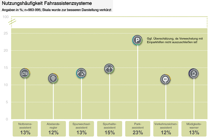Das Fahrerassistenzsystem mit dem höchsten Unfallvermeidungspotenzial ist der Notbremsassistent. Laut Unfallforschung der Versicherer (UDV) können durch einen Notbremsassistenten, der bewegte und stehende zweispurige Fahrzeuge sowie Fußgänger und Radfahrer erkennt, über 43 Prozent der Pkw-Unfälle vermieden werden.