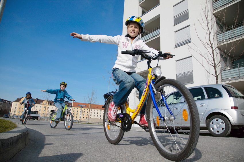 Zudem zeigen sich bei Zehnjährigen immer häufiger körperliche und motorische Defizite, die sich im Radfahreralltag bemerkbar machen können. Schwierigkeiten bereitet etwa das Spurhalten, wenn der Blick zur Seite oder nach hinten geht. Wichtig ist daher, dass Kinder besonders viel Bewegung haben, um vorhandene motorische Mängel zu kompensieren. Auf dem Weg zu einer eigenständigen und verantwortungsvollen Mobilität ist es daher nicht sinnvoll, Kinder mit dem „Elterntaxi“ zur Schule zu bringen.