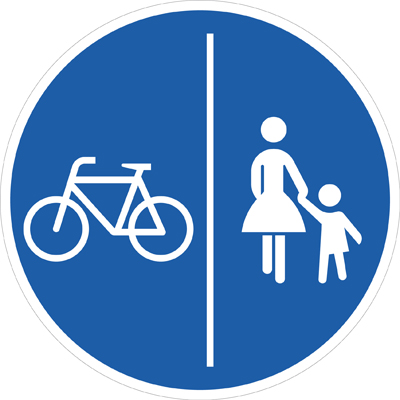 Trennt eine weiße Linie senkrecht das Radwegschild (Z 241), dann müssen Radfahrer die eine Seite und Fußgänger die andere Seite des Weges benutzen. Ist das blaue Schild quer geteilt (Z 240), zeigt es einen gemeinsamen Geh- und Radweg an. Dann ist er auch für Radfahrer benutzungspflichtig.