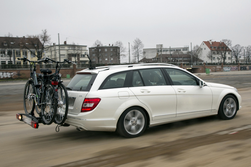 Vermeintlich am großzügigsten lässt es sich bei Fahrradträgern an der Heckklappe rechnen, denn dort begrenzt die relativ hohe zulässige Achslast an der Hinterachse die Zuladung. Doch sollte man bedenken, dass darin bereits das auf der Hinterachse lastende Fahrzeugeigengewicht enthalten ist. Grundsätzlich empfiehlt die GTÜ größte Vorsicht beim Fahren mit Dach- und Heckträgern. Denn es ändert sich das Fahrverhalten beim Lenken und Bremsen. Außerdem steigen der Kraftstoffverbrauch und die Seitenwindempfindlichkeit enorm an.