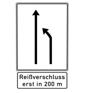 Wenn die Straße enger wird, kommt oft das Reißverschlussverfahren zur Anwendung: Diese Methode trägt maßgeblich dazu bei, den Verkehrsfluss zu erhalten. Doch was in der Theorie gut gemeint ist, führt in der Praxis immer wieder zu Konflikten. Ob Baustelle, Unfall oder Ende einer Ausbaustrecke: das Reißverschlussverfahren ist auf Straßen mit mehreren Fahrstreifen immer dann angesagt, wenn ein Fahrstreifen nicht durchgängig befahren werden kann oder ganz endet. Laut § 7 Absatz 4 der Straßenverkehrsordnung ist „den am Weiterfahren gehinderten Fahrzeugen der Übergang auf den benachbarten Fahrstreifen“ zu ermöglichen – und zwar so, dass sie sich jeweils im Wechsel nach einem Fahrzeug einordnen können, das auf dem durchgehenden Fahrstreifen fährt.