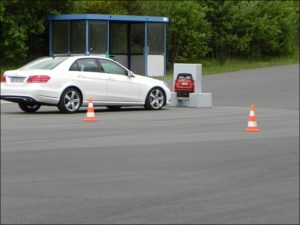 Was tut nun der Notbremsassistent? Er misst den Abstand zu Vordermann unter Berücksichtigung der aktuellen Fahrtgeschwindigkeit, warnt frühzeitig, wenn er sich verringert, und verschafft dem Fahrer so wertvolle Zeit zu reagieren. Wenn es zur Bremsung kommt, unterstützt er den Fahrer, indem er die Bremsung verstärkt, sofern das Bremspedal nicht richtig durchgetreten wird. Und bleibt eine Bremsung aus, führt der Notbremsassistent sie komplett eigenständig durch. Fachleute gehen davon aus, dass Notbrems-Assistenzsysteme bei flächendeckender Ausstattung je nach Funktionsumfang 20 – 40 % der Pkw- zu Pkw-Unfälle mit Personenschäden positiv beeinflussen oder verhindern. Manche Notbremsassistenten sind darüber hinaus noch mit einem Insassenschutz verbunden: Ist ein Aufprall unvermeidbar, ziehen sich automatisch die Gurte fest, Sitze und Kopfstützen werden in die richtige Position gebracht. Aus der Verantwortung entlässt der Notbremsassistent den Fahrer allerdings nicht: Er wurde für Gefahrensituationen entwickelt, nicht dazu, den Fahrer aus der Verantwortung zu entlassen. Demnach sollte es tunlichst unterlassen werden, seine Funktionstätigkeit „aus Spaß“ auszuprobieren.