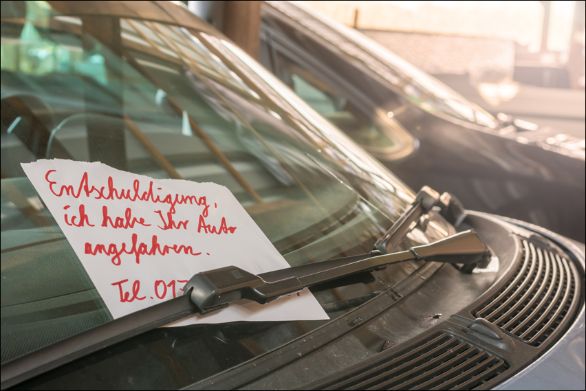 Zettelwirtschaft: Darf ich bei einem harmlosen Parkunfall eine Nachricht hinterlassen?