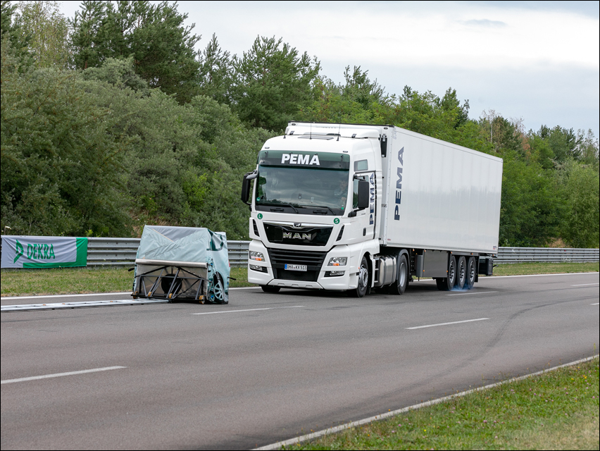 Viele der heute verfügbaren Systeme leisten allerdings deutlich mehr als diese Vorgabe. „Die Fahrzeuge kommen – je nach Ausgangsgeschwindigkeit – in den meisten Fällen selbst vor einem stehenden Hindernis komplett zum Stillstand und vermeiden die Kollision. Das haben unsere Versuchsfahrten auf unserem Testgelände am Lausitzring mit verschiedenen Lkw-Fabrikaten gezeigt“, erklärt DEKRA Vorstand Klinke. „In den anderen Fällen bauen die Systeme durch die automatische Gefahrenbremsung den allergrößten Teil der Bewegungsenergie ab, so dass eine Kollision am Ende wesentlich geringere Auswirkungen hat.“
