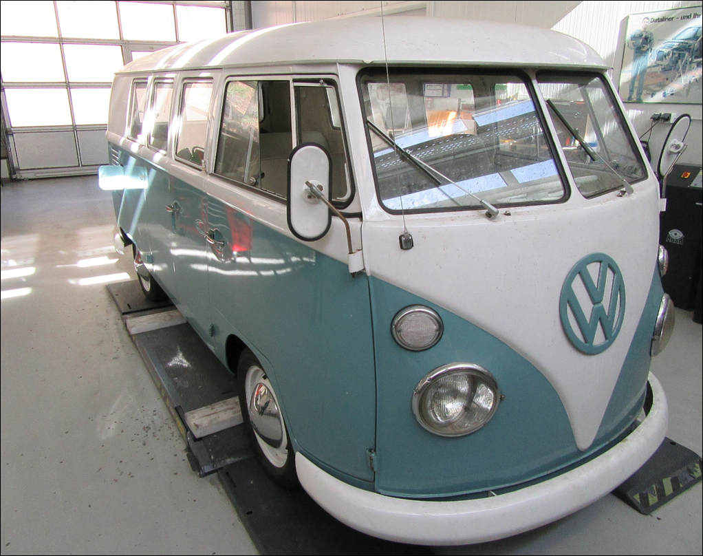 Sicherheitsrelevante Mängel: Auf den ersten Blick hat der Bulli aus dem Jahr 1966 eine recht gute Optik. Wer genauer hinschaut, merkt aber, was bei dem Fahrzeug alles im Argen liegt – und das ist eine Menge. Foto: Dekra.Auch auf der Hebebühne gibt es keinen erfreulichen Anblick. „Dass der Unterboden mit nicht fahrzeugtypischen Blechen alles andere als authentisch restauriert wurde, ist die eine Sache. Hinzu kommt: Da hat jemand nicht fachgerecht geschweißt, Nähte sind nicht vernünftig abgedichtet – die Folge sind Durchrostungen in der gesamten Bodengruppe und im Oberbau“, zählt der Experte auf.
