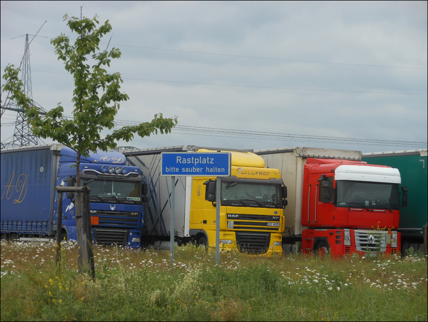Zur Einhaltung der vorgeschriebenen Ruhezeiten: Lkw-Stelllätze an der A38. Foto: Petra Grünendahl.Nach Ansicht der Vereinigung Deutscher Autohöfe e.V. (VEDA) kosten fehlende Lkw-Parkplätze entlang deutscher Autobahnen jedes Jahr Menschenleben. „Bundesweit fehlen rund 31.000 solcher Lkw-Stellflächen. Durch überfüllte Parkplätze kommt es immer wieder zu Unfällen, bei denen auch Todesopfer zu beklagen sind“, sagte Alexander Ruscheinsky dem MDR-Magazin „Umschau“. Ruscheinsky ist VEDA-Ehrenpräsident. Gemeint sind damit beispielsweise Unfälle durch Lkw, die auf Verzögerungsstreifen parken. Einer internen Auswertung der VEDA zufolge soll es in den vergangenen fünf Jahren bundesweit mindestens zu 13 solchen Unfällen mit insgesamt 16 Todesopfern gekommen sein. „Der Güterverkehr auf der Straße hat sich deutlich stärker entwickelt als angenommen. Das wurde unterschätzt und auch verschlafen“, sagte ADAC-Sprecherin Melanie Mikulla der „Umschau“. Was außerdem fehle, seien Parkleitsysteme für Lkw-Fahrer, mit denen sie verlässlich freie Plätze an Raststätten und Autohöfen schnell und zielsicher ansteuern könnten, so Mikulla.