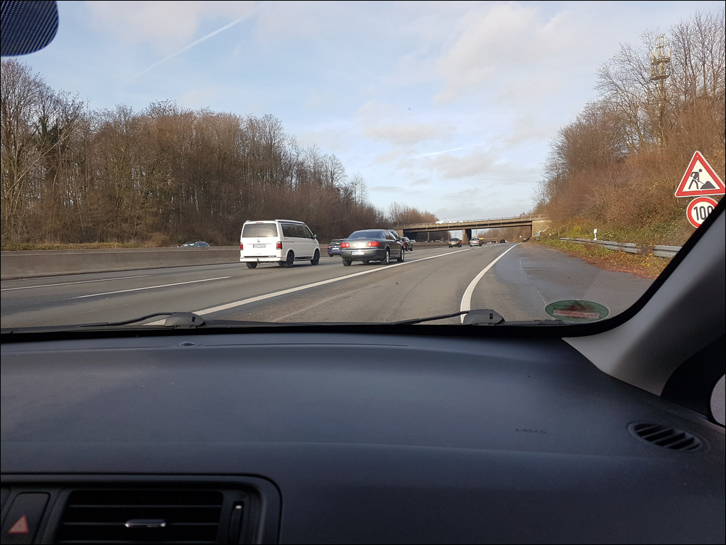 Ausreichend Sicherheitsabstand einhalten Auffahren auf die Autobahn. Foto: André C. Sommer.Um sicher auf die Autobahn zu gelangen, den linken Blinker setzen, zügig beschleunigen, den fließenden Verkehr in den Rückspiegeln und schließlich per Schulterblick beobachten und dann mit ausreichend Abstand auf die rechte Spur fahren. Auf keinen Fall mit Gewalt zwischen zwei Fahrzeuge drängeln. Das bringt einen selbst und andere in Gefahr. Übrigens: Auf der Beschleunigungsspur darf schneller gefahren werden als auf dem rechten Fahrstreifen.