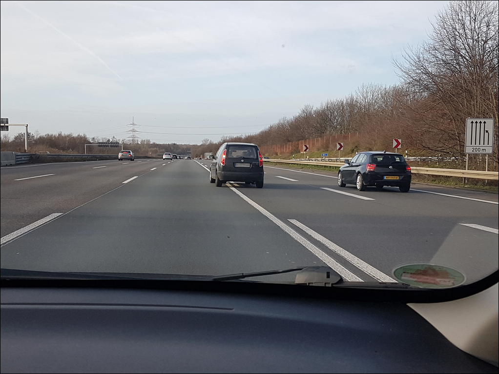 Zunächst auf der rechten Spur bleiben Falsch: Sich bei zwei Beschleunigungsstreifen ohne Grund in den fließenden Verkehr drängeln, dass der Wagen auf der rechten Spur abbremsen muss. Foto: André C. Sommer.Andere Verkehrsteilnehmer können bei Auffahrmanövern – insbesondere von langsamen Fahrzeugen wie schwer beladenen Lkw – die Geschwindigkeit reduzieren oder nach links ausweichen, sofern das der fließende Verkehr gefahrlos zulässt. „Nach dem Einfädeln aus Sicherheitsgründen zunächst auf der rechten Spur weiterfahren und nicht direkt nach links ausscheren. Auch hier gilt: Erst wenn sich im Rückspiegel eine ausreichend große Lücke ergibt, die Fahrspur wechseln“, erklärt TÜV-Rheinland-Experte Rechtien. TÜV Rheinland AG Fotos: André C. Sommer