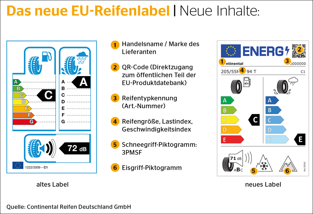 - Neues Labeldesign mit übersichtlicherer Brems-, Rollwiderstands- und Geräuschklassifizierung