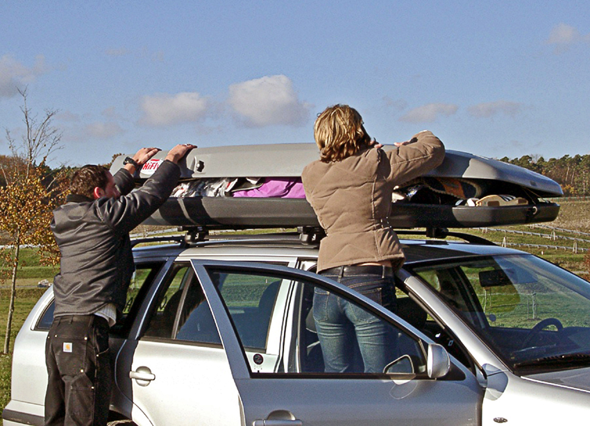 Dachbox. Foto: GTÜ.Mit Dachbox, Fahrradträger für die Anhängerkupplung und einem vollgepackten Kofferraum ist ein Auto schneller überladen als man denkt. Laut Erkenntnissen aus dem ADAC Autotest beträgt die maximale Zuladung, auch bei vielen neueren Fahrzeugen, oft weniger als 500 Kilogramm. Wer wissen möchte wie viel sein Auto zuladen kann, muss einen Blick in die Zulassungsbescheinigung Teil I (Fahrzeugschein) werfen. Unter F findet man das zulässige Gesamtgewicht und unter G das Leergewicht – die Differenz ergibt die Zuladung.