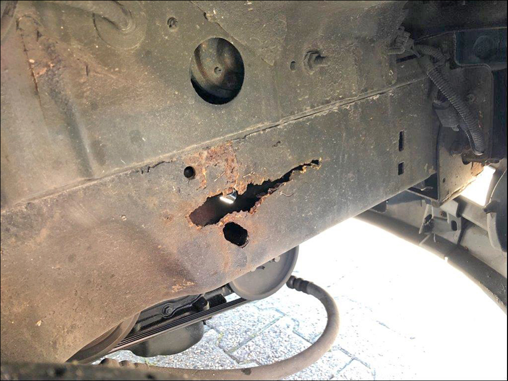 Die Polizeibeamten waren im Langenfelder Stadtgebiet unterwegs, als ihnen schon von weitem ein weißer Ford Transit auffiel, der sich augenscheinlich in einem erheblich desolaten Zustand befand. Als die Polizisten den Fahrer, einen 44-jährigen Kölner, daraufhin anhielten, stellten sie fest, dass ihr Anfangsverdacht nicht unbegründet war. So konnten sie noch vor Ort feststellen, dass der als Paketzustellwagen genutzte Ford großflächig durchgerostet war, was zur Folge hatte, dass die nächstgelegene TÜV-Prüfstation aufgesucht wurde.