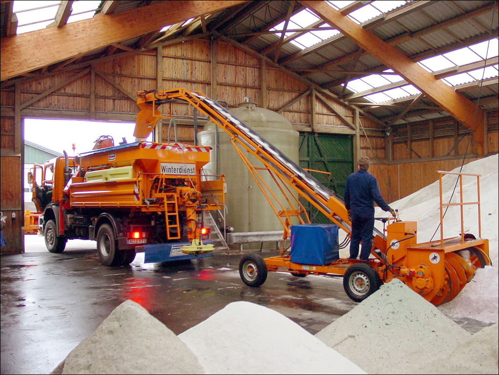 Wenn Schnee und Glätte drohen, ist Eile geboten. Je eher gestreut wird, desto besser. Deshalb stehen die Fahrzeuge startklar, umgerüstet und beladen bereit, wenn die Straßenwärterund Straßenwärterinnen zum Einsatz ausrücken. Beim Streuen setzt Straßen.NRW angefeuchtetes Streusalz ein, das sich zu 70 Prozent aus Trockensalz und zu 30 Prozent aus Salzlösung zusammensetzt. Angefeuchtetes Salz haftet besser an der Fahrbahn und kann exakter dosiert werden als Trockensalz. Es wird nicht so schnell verweht, der Salzverbrauch ist geringer, gleichzeitig bietet Feuchtsalz eine höhere Wirksamkeit als Trockensalz. Splitt und andere abstumpfende Mittel, etwa Sand, kommen auf den Straßen des überörtlichen Verkehrs wegen der fehlenden Tauleistung nicht zum Einsatz. Beim Salzverbrauch gilt jedoch immer der Grundsatz: So viel wie nötig, so wenig wie möglich.