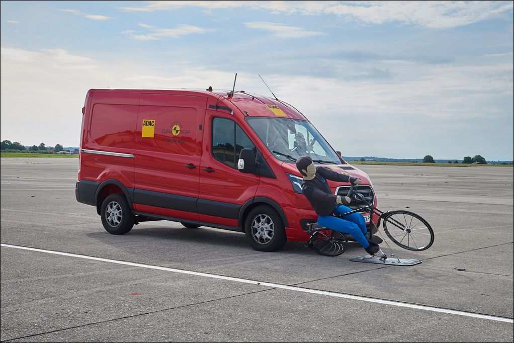 Sicherheitsrisiko Kleintransporter: im Rahmen der General Safety Regulation ab Juli 2022 (Neufahrzeuge ab Juli 2024) müssen Nutzfahrzeuge mit einem autonomen Notbremssystem ausgestattet sein, jeweils zwei Jahre später auch mit Erkennung von Fußgängern und Radfahrern. Foto: Uwe Rattay / ADAC.Kleintransporter bis 3,5 Tonnen prägen das Straßenbild in Deutschland: Handwerker, Lieferdienste oder Camper sind damit unterwegs. Wie es um die Sicherheit dieser Fahrzeuge bestellt ist, wollten ADAC und Euro NCAP nach einem ersten Test im Jahr 2020 erneut wissen, das ernüchternde Ergebnis: Auch 2022 ist keins der 19 getesteten Modelle serienmäßig mit Sicherheitssystemen wie dem Notbremsassistenten ausgestattet. Lediglich ein Gurtwarner ist serienmäßig in den Fahrzeugen verbaut. Mehr Sicherheit gibt es also immer noch nur gegen Aufpreis.