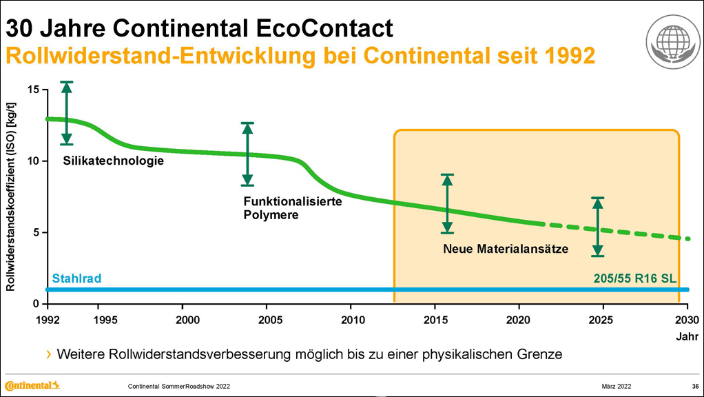 30 Jahre Reifenentwicklung für Sparsamkeit und Sicherheit Conti EcoContact: Verbesserungen beim Rollwiderstand. Infografik: Continental Reifen.Konnte man sich 1992 bei Continental noch nicht sicher, ob es für den EcoContact einen Markt gab, gab der Erfolg den Entwicklern Recht: Seit 1992 hat Continental rund 200 Mio. Reifen der EcoContact-Produktfamilie verkauft. Auch deswegen, weil es inzwischen nicht nur Autofahrer sind, die auf Nachhaltigkeit auch bei Reifen setzen. Fahrzeughersteller fordern von ihren Zulieferern zunehmend Produkte, die in ihrer gesamten Wertschöpfungskette ökologischer und sozialer Verantwortung verpflichtet sind.