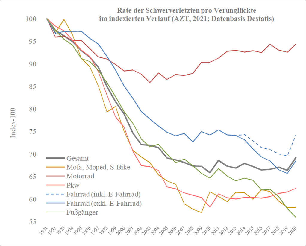 - Anteil der schwer verletzten an allen verunglückten Motorradfahrern steigt