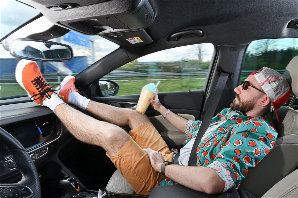 „Dieses so genannte ‚Submarining‘ erlebt man auch dann, wenn die Rückenlehne zu flach eingestellt ist“, erklärt der Experte. „Sowohl der Schultergurt als auch der Beckengurt können dann ihre Rückhaltewirkung nicht im nötigen Maß entfalten. Um es klar und deutlich zu sagen: Liegen und Lümmeln sind für Beifahrer im Ernstfall lebensgefährlich.“