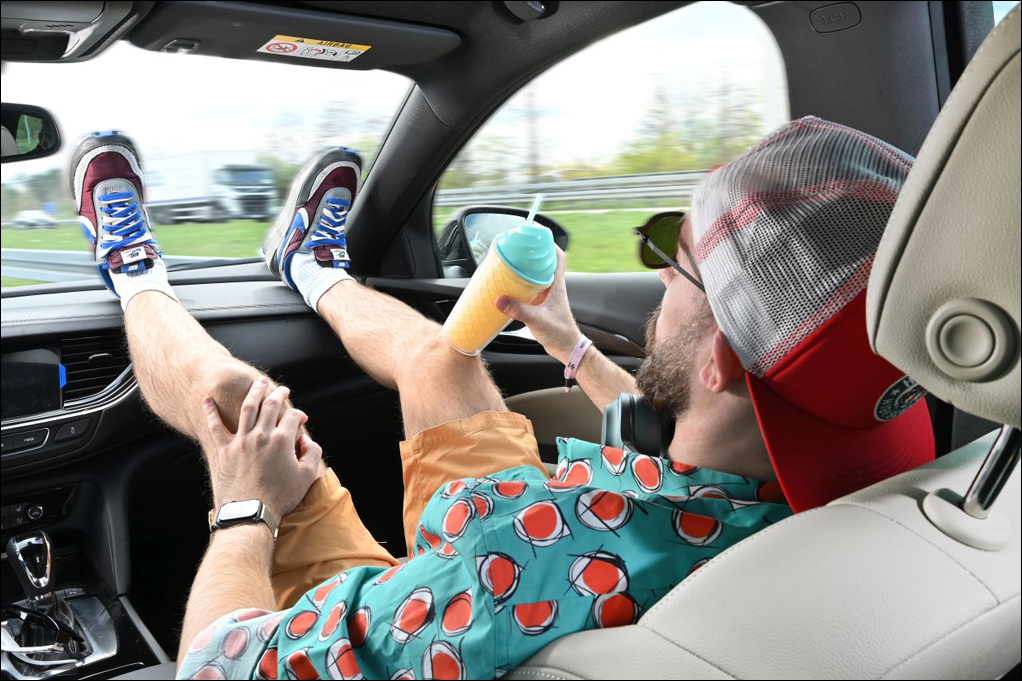 Und noch eine Warnung ist Andreas Schäuble besonders wichtig: „Wenn Beifahrerinnen und Beifahrer die Füße auf dem Armaturenbrett ablegen, kann das bei einem Unfall schwerste Verletzungen verursachen“, erklärt er. „Falls in dieser Position der Airbag auslöst, werden die Knie Richtung Kopf geschleudert, der Beckengurt hat keinen Halt an den Beckenknochen und kann tief in den Bauchraum eindringen. Die Füße sollten unbedingt im Fußraum bleiben.“