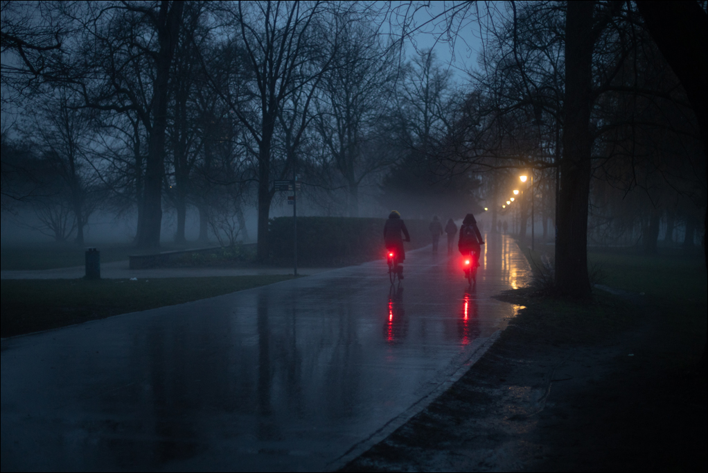Der wichtigste Punkt in der dunklen Jahreszeit ist die Sichtbarkeit, und an erster Stelle steht eine ordentliche Beleuchtung. Die Einschätzung, was ordentlich ist, bleibt nicht dem Radler überlassen: Paragraph 67 der Straßenverkehrszulassungsordnung (StVZO) äußerst sich detailliert zu den „lichttechnischen Einrichtungen an Fahrrädern“. Sie müssen mit einem oder zwei nach vorn wirkenden Scheinwerfern ausgerüstet sein, die den Gegenverkehr nicht blenden dürfen. Eine rote Schlussleuchte muss sich mindestens 25 Zentimeter über der Fahrbahn befinden. Vorgeschrieben sind zudem Reflektoren, je zwei an den Pedalen sowie beidseitig an Vorder- und Hinterrad.