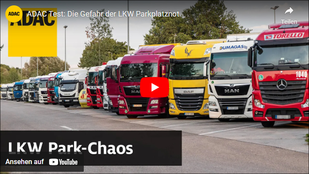 Foto: Screenshot. Der ADAC hat erstmals bundesweit untersucht, wie groß das Problem fehlender Lkw-Stellplätze entlang der deutschen Autobahnen ist und wie stark die Verkehrssicherheit dadurch eingeschränkt wird. Dafür hat der Club die alltägliche Parksituation an insgesamt 96 Anlagen überprüft. Das Ergebnis: An fast jeder zweiten Rastanlage waren Lastwagen im hochsensiblen Ein- und Ausfahrtbereich oder auf den Seitenstreifen der Autobahn abgestellt. Auf 86 Rastanlagen standen Lkw im absoluten Halteverbot oder auf nicht für sie freigegebenen Parkflächen. Zudem war das Parken außerhalb markierter Flächen die Regel. Nur an einer einzigen Anlage gab es keine Falschparker (Lüneburger Heide West, A7, Niedersachsen). Zwei der überprüften Anlagen waren derart zugeparkt, dass sie nicht ausgezählt werden konnten, weil die Tester selbst dort nicht parken konnten.
