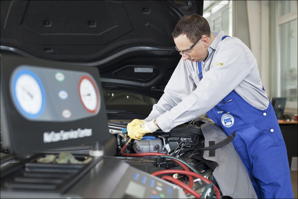Bei einer korrekten Klimawartung hingegen wird die Anlage komplett entleert, der Inhalt gewogen und dann um die gemessene Fehlmenge ergänzt wieder eingefüllt. Nur so kann die Werkstatt sicherstellen, dass auch immer genügend Schmiermittel vorhanden ist und das teuerste Bauteil einer Klimaanlage, der Kompressor, seine bestmögliche Lebensdauer erreicht.