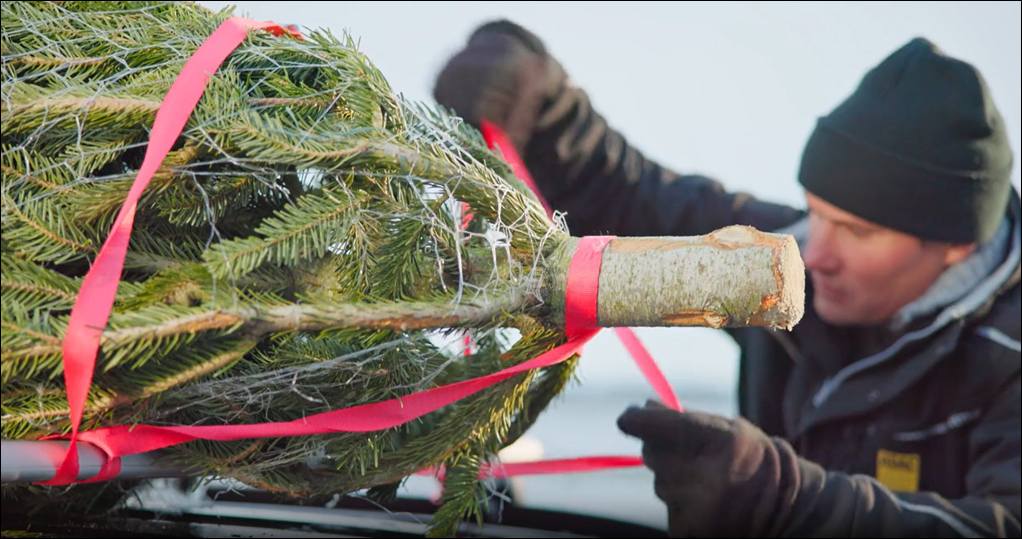 Um den Weihnachtsbaum sicher an sein Ziel zu bringen,