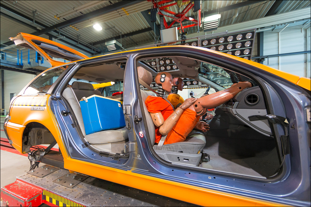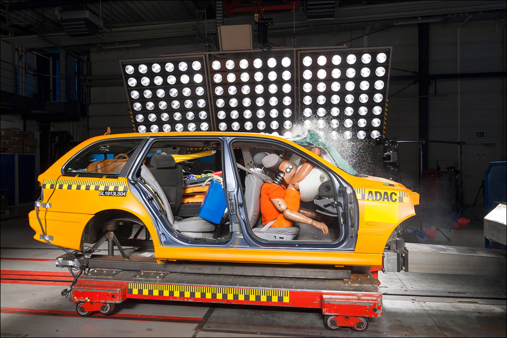 Ein Crashtest der ADAC Unfallforschung mit 64 km/h hat gezeigt, dass bei einer Vollbremsung oder einem Unfall mit Airbagauslösung ein erhebliches Gefahrenpotenzial besteht, wenn die Füße auf dem Armaturenbrett abgelegt werden. Der Airbag tritt mit einer Geschwindigkeit von bis zu 400 Stundenkilometern aus und die auf dem Armaturenbrett liegenden Beine werden in Richtung Oberkörper geschleudert. Der Beifahrer wird wie ein Klappmesser zusammengefaltet und durch den Zusammenstoß des Kopfes mit den Knien kann es zu schwersten Verletzungen kommen. Zudem kann es zu schwerwiegenden Frakturen der unteren Extremitäten und des Beckens kommen.