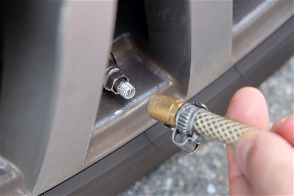 Heute geht das Ganze schnell an jeder Tankstelle: Ventilkappe abschrauben, Stecker des mobilen Messgeräts aufsetzen und über die Plus- und Minus-Knöpfe des Kompressors den Druck anpassen. An manchen Stationen stehen auch fest installierte Kompressoren mit einem langen Schlauch. Dort wird der Wert am Gerät digital angezeigt und voreingestellt. Dann den Schlauch festklemmen und die Prüfung starten. Der Kompressor passt den Druck automatisch an.