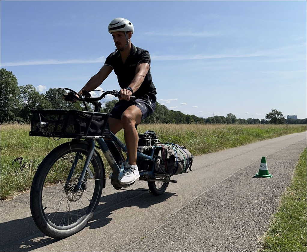 Die Studie untersuchte durch empirische Tests, wie sich die Bremsleistung in verschiedenen Beladungszuständen unterscheidet und ob aktuelle Bremssysteme den Sicherheitsanforderungen gerecht werden. Am Start waren fünf unterschiedliche Modelle und Bauarten von Lastenrädern – manche neuwertig, manche schon mit großen Laufleistungen und bereits beanspruchten Bremsanlagen. Bei realen Fahrten mit einem erfahrenen Testfahrer wurde jeweils aus 25 km/h bis kurz vor die Blockiergrenze gebremst – und das in unterschiedlichen Beladungszuständen: in einer Versuchsreihe nur mit dem Fahrer und der Messtechnik, in einer zweiten mit zusätzlicher Ladung von 50 kg, und in einer dritten Versuchsreihe mit voller Beladung bis zur vom Hersteller angegebenen zulässigen Gesamtmasse. Diese reichte bis zu 270 kg bei einem zweispurigen Frontlader-Modell mit großer Transportbox.