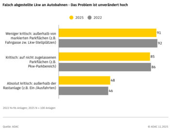 Deshalb appelliert der ADAC an die Politik, den Stellplatzausbau deutlich zu beschleunigen und bestehende Flächen effizienter zu nutzen. Neben dem klassischen Neu- und Ausbau könnten intelligente Parksysteme („Lkw-Kolonnenparken“) und digitale bereitgestellte Stellplatzinformationen sowie Reservierungslösungen stärker eingesetzt werden. Gleichzeitig muss das illegale Abstellen auf Zu- und Abfahrten weiterhin konsequent geahndet werden. Auch Unternehmen könnten nach Ansicht des Mobilitätsclubs helfen, den Druck zu mindern – etwa durch die zeitweise Bereitstellung firmeneigener Lkw-Parkflächen in Autobahnnähe.