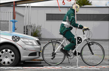 „Dieser Dummy ist entwickelt worden, um bei Crashtests die Rolle der verletzlichen Verkehrsteilnehmenden zu spielen und bei der Kollision Fahrzeugschäden zu erzeugen, die mit den Schäden vergleichbar sind, die bei echten Unfällen entstehen“, erklärt Andreas Schäuble aus der DEKRA Unfallforschung. Die bei Pkw-Crashtests verwendeten Dummies sind dafür nicht ausgelegt. „Sie sind relativ starr und verursachen bei einem Aufprall auf ein Fahrzeug viel stärkere Verformungen als ein echter Mensch“, so der Biomechaniker.